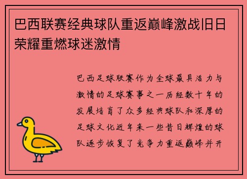 巴黎圣日耳曼与马赛之间的对决,一直以来都是法甲联赛中最具看点和激情的比赛之一。无论是球迷的热情,还是场上的激烈对抗,都让这场比赛成为法国足球的经典之作。本文将从四个方面详细探讨巴黎圣日耳曼与马赛对决如...